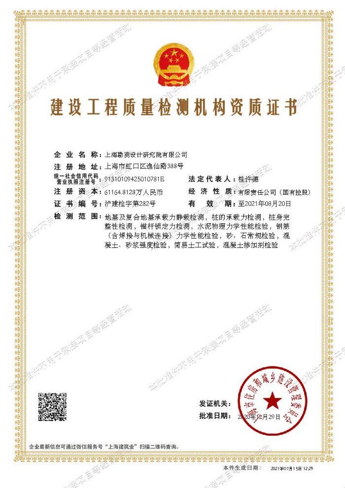 建設工程質量檢測機構資質證書